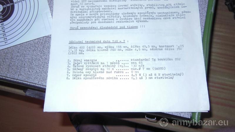 Popis: Prodám vzduchovou pistoli na CO2 TAU-7.Ve velmi dobrém stavu s kufříkem. Anatomická pažba pro praváka. cena:5500+poštovné.