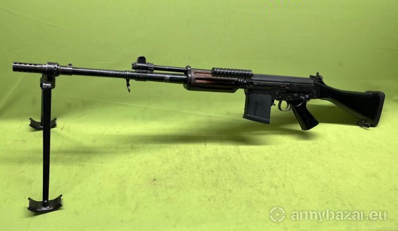 Popis: Karabin samopowtarzalny FN FALO w kalibrze 7,62x51mm (.308Win.) to wersja karabinu FAL wyposażona w grubą lufę oraz dwójnóg, poprzez co przystosowana została do roli karabinu maszynowego drużyny. Oferowany karabin jest we wczesnej wersji 50-41, wyposażonej w kolbę z tworzywa sztucznego. Wyprodukowany został w belgijskich zakładach FN Herstal i dostarczony do armii Izraelskiej, nie posiada jednak Izraelskich oznaczeń - obecne są wyłączenie oznaczenia fabryczne. Wizualnie w dobrym stanie - nie przeszedł remontu, widoczne zarysowania powłoki i otarcia. Mechaniczne w bardzo dobrym. Lufa chromowana w stanie bardzo dobrym - lustro. W komplecie jeden magazynek. Na terenie Polski dowóz w cenie.