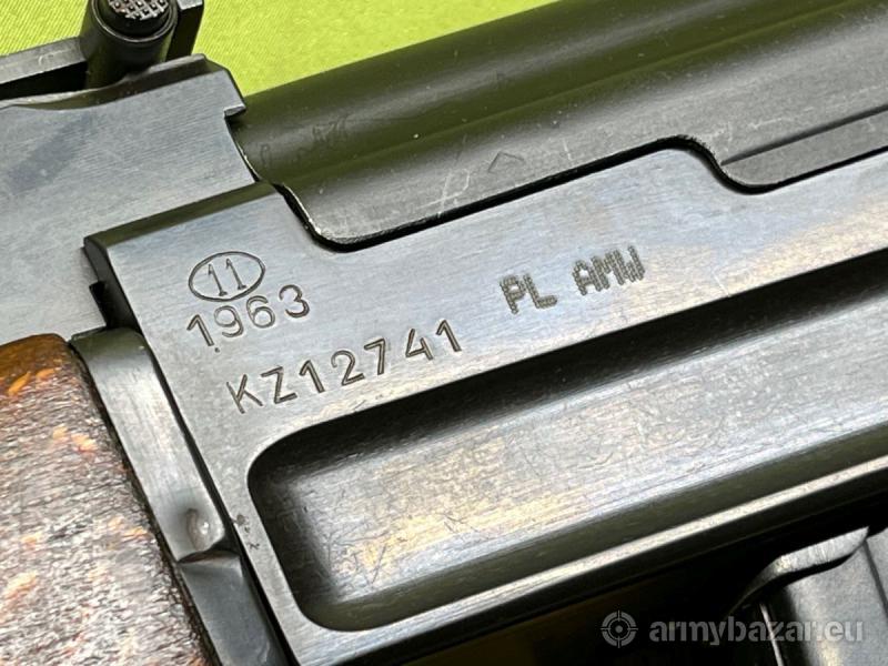 Popis: Przedstawiony na zdjęciach egzemplarz znajduje się w stanie bardzo dobrym. Jest to egzemplarz wtórnie oksydowany - używany, jednak kulturalnie i niezbyt dużo strzelany. Posiada oryginalne drewno - zarówno chwyt pistoletowy, łoże przednie oraz kolbę i jest w pełni zgodny numerycznie (ramię szczerbinki uzgadniane, łoże bez numeru). Lufa chromowana w stanie idealnym - lustro z nienaruszonymi wylewkami chromu.. Karabinek przerobiony z maksymalnym poszanowaniem walorów kolekcjonerskich - brak współczesnych oznaczeń. W komplecie z karabinkiem znajduje się pełne wyposażenie widoczne na zdjęciach. Dowóz na terenie Polski w cenie.