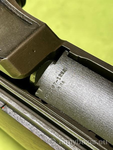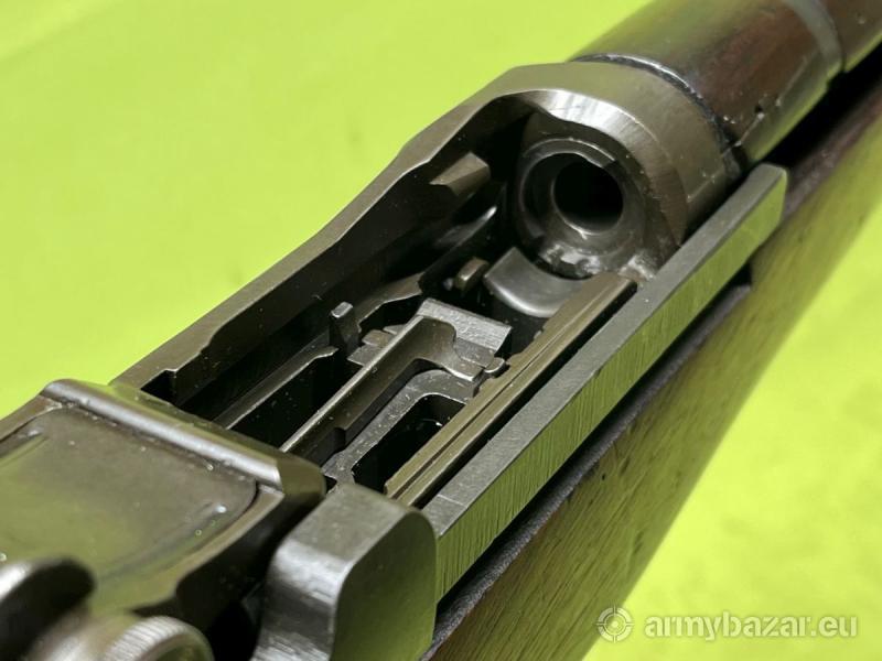 Popis: Ten egzemplarz został wyprodukowany przez Springfield Armory. Pochodzi z demobilu armii Włoskiej. Przeszedł remont, w trakcie którego wymieniono lufę, zmieniając kaliber broni z .30-06 na 7,62x51mm - standardowy nabój karabinowy przyjęty przez NATO w 1954 roku. Przedstawiony na zdjęciach egzemplarz jest w stanie bardzo dobrym. Osada oryginalna z drobnymi obiciami, widoczny jest przytarty odbiór wojskowy w postaci litery P na chwycie pistoletowym. Od spodu osada posiada otwory po wkrętach mocujących bliżej nieokreślony element, prawdopodobnie dwójnóg. Lufa w stanie idealnym - lustro. Ten egzemplarz nie pochodzi z cywilnego rynku niemieckiego, w związku z czym nie posiada typowych modyfikacji.