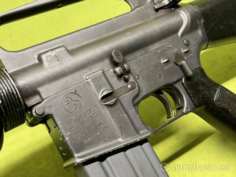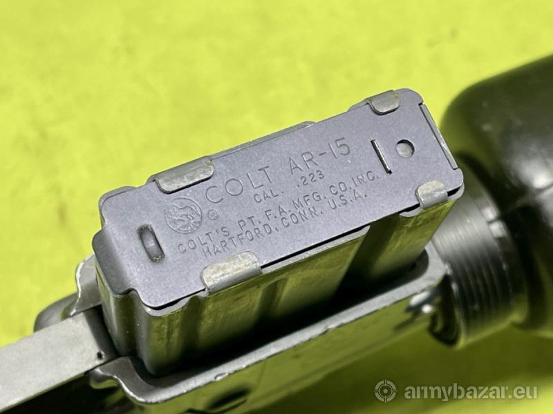 Popis: Karabin w stanie bardzo dobrym, nieremontowany. Wykończenie - oryginalna parkeryzacja. Okładziny i trzewik, kolba mogą posiadać delikatne uszczerbki/ pęknięcia, ale bez większych uszkodzeń. Z przodu gniazda magazynka widoczne resztki białej farby stępla akceptacji Department Of Defence - DOD. Stan mechanizmów bardzo dobry, lufa idealna - lustro. W komplecie jeden oryginalny, 20 nabojowy magazynek produkcji Colt'a. W przeciwieństwie do komercyjnych M16A1, pochodzących z kontraktu Colt'a dla Malezji, egzemplarze wyprodukowane dla Armii Amerykańskiej i oznaczone "PROPERTY OF US GOVT" są niezwykłą rzadkością. Karabinki dostępne w niewielkiej, ograniczonej ilości. Dowóz na terenie Polsk