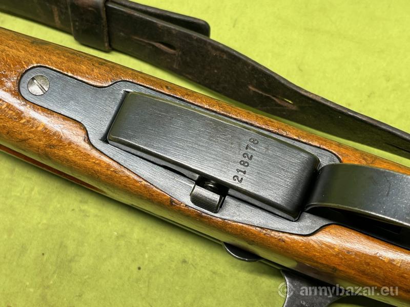 Popis: Oferowany karabinek jest w stanie bardzo dobrym. Zgodny numerycznie i w oryginalnej oksydzie. Na powierzchni oraz osadzie widoczne ślady użytkowania. Mechanicznie w doskonałym stanie, lufa idealna - lustro. Pomimo wieku nie widać w niej żadnych oznak zużycia. Pod trzewikiem kolby nadal znajduje się karteczka z danymi żołnierza, któremu przydzielono ten karabinek. W komplecie oryginalny pas nośny oraz zapiaszczacz. Na terenie Polski dowóz do klienta gratis.