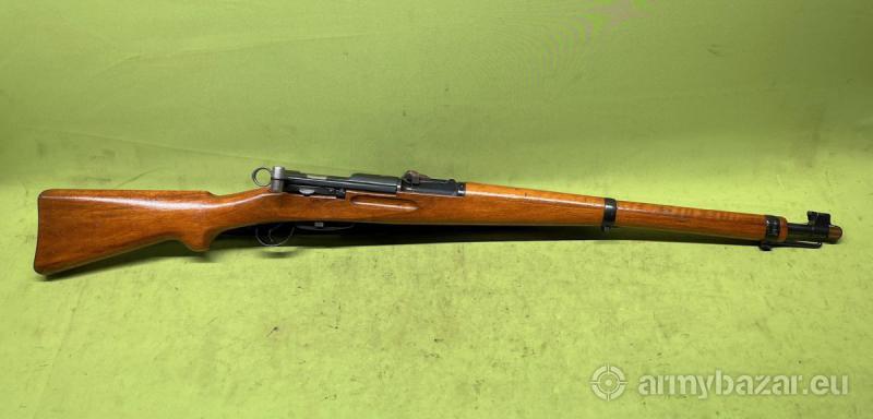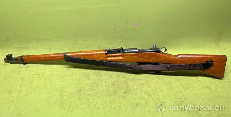 Popis: Oferowany karabinek jest praktycznie jak nowy, choć wyprodukowany w roku 1941. Wyjątkowo ładny egzemplarz - najładniejszy jaki widzieliśmy do tej pory. Zgodny numerycznie i w oryginalnej oksydzie. Osada bez większych zarysowań z widocznymi puncami i w pięknym oryginalnym wykończeniu. Lufa idealna - lustro. Pod trzewikiem kolby nadal znajduje się karteczka z danymi żołnierza, któremu przydzielono ten karabinek. Brak puncy "P" świadczy o tym, że broni nigdy nie sprywatyzowano lecz sprzedano bezpośrednio z zasobów Armii Szwajcarskiej. Takie egzemplarze zdarzają się bardzo rzadko. W komplecie oryginalny pas nośny wyprodukowany w 1938 roku oraz zapiaszczacz.