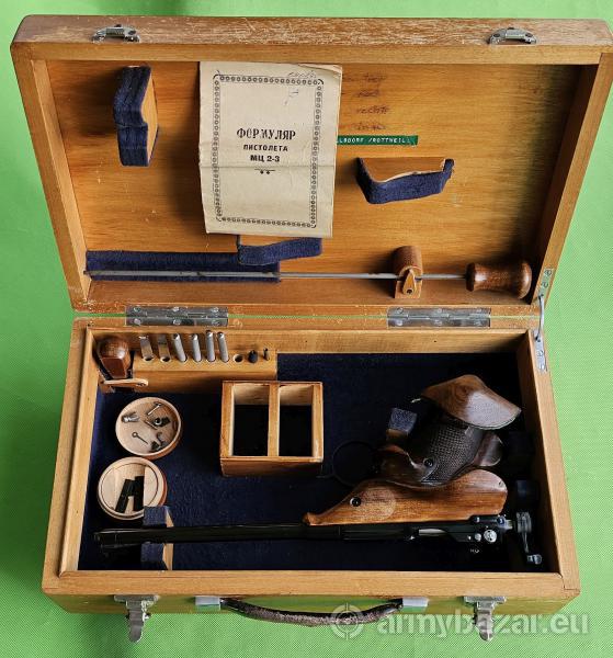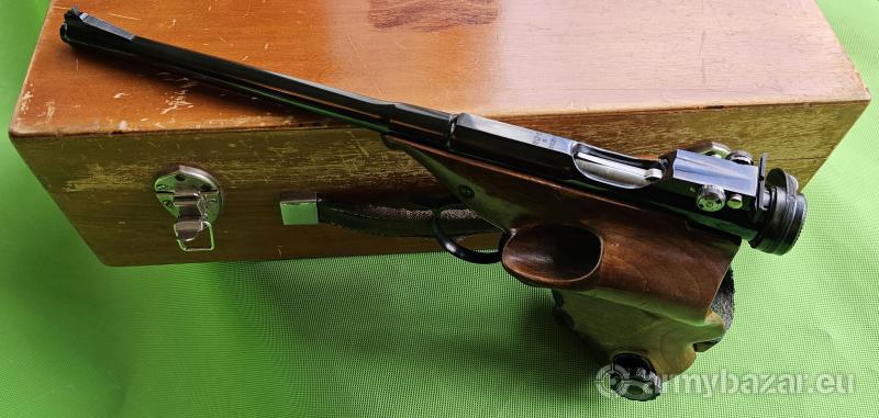 Popis: Rzadki, precyzyjnie wykonany jednostrzałowy, wyczynowy pistolet dowolny z unikatową konstrukcją zamka ryglowanego przez obrót. Broń produkowana w niewielkiej ilości, kompletowana i pasowana ręcznie. Egzemplarz w doskonałym stanie, w 100% oryginalny i zgodny numerycznie, lufa w stanie fabrycznym. W komplecie zestaw narzędzi, wycior, olejarka, przybornik z częściami, uwidocznionymi na zdjęciu, a także fabryczna metryka broni. Wszystko w oryginalnym, drewnianym kufrze. Sprzedaż wyłącznie dla osób/podmiotów uprawnionych zgodnie z obowiązującym prawem. Odbiór wyłącznie osobisty. Na życzenie bezpłatna dostawa do klienta. Tel. 512 306 160. Szczegóły na www. BronAmunicja.pl