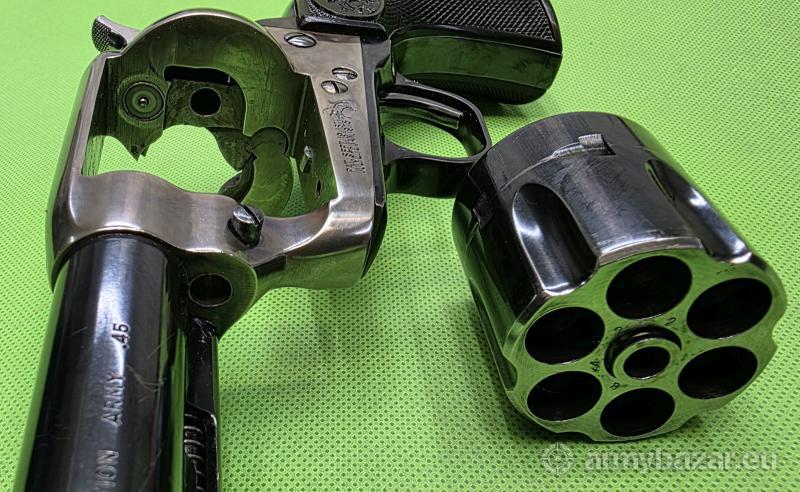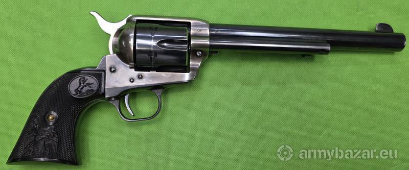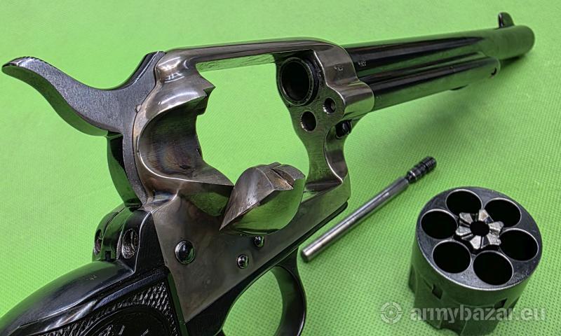 Popis: Legendarny rewolwer, zaprojektowany na potrzeby wojska w 1872 r. używany w armii amerykańskiej w latach 1873–1892. Nazywany „Peacemaker” jest także znanym symbolem epoki Dzikiego Zachodu. Rewolwer ten nosił generał G S. Patton. Egzemplarz wyprodukowany w 1978 r. tj. 3 generacja produkcyjna (1976 – 1993). Lufa długości 7,5 cala – czyli w wersji, jaka wydawana była kawalerii amerykańskiej. Doskonały stan, przewód lufy idealny. Wszystko 100% oryginalne, z jednej fabrycznej kompletacji. Szczegóły na www. BronAmunicja.pl. Sprzedaż wyłącznie dla osób/podmiotów uprawnionych zgodnie z obowiązującym prawem. Odbiór wyłącznie osobisty. Na życzenie bezpłatna dostawa do klienta. Tel. 512 306 160