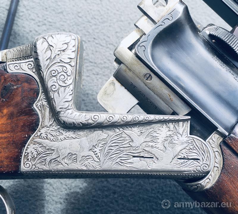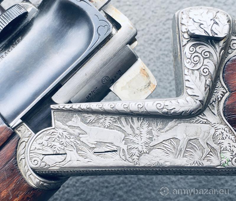Popis: • Predám klasickú nemeckú gulobrokovú kozlicu Sauer&Sohn model 54 s krásnym loveckým gravírom - pozri foto • kaliber 6,5x57R/16 • Lahká, elegantná a štíhla puška je bohato rytá zo všetkých strán. Zvierací motív lemovaný dubovými listami • Hlavne sú úplne čisté, drážky hlboké a ostré • Žiadna vôľa v zámkoch, hlavne patentne dosadajú • Gulabrok je vo výbornom stave • Pažba je z orechovice s peknou kresbou - upozorňujem na drobnú prasklinu. Nie je spôsobená pádom ale linoiu kresby dreva • Gulobrok má napináčik na gulovej spúšti • Klasická poctivá nemecká variabilná optika Zeiss 1,5-6x42, montáž tesná • Puška je ľahká a vhodná na pohodlné a dlhé nosenie 0903 84 83 82