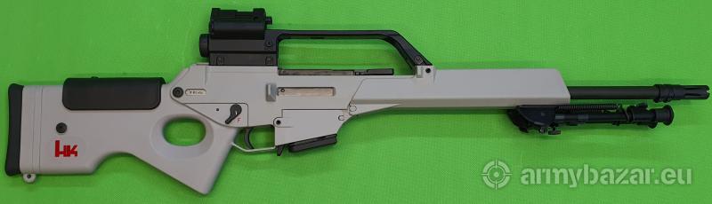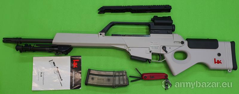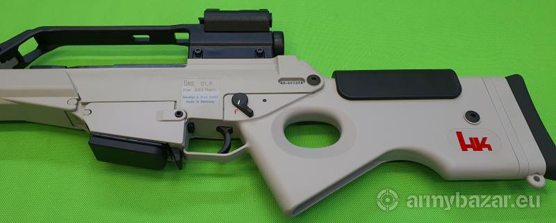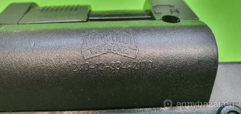 Popis: Samopowtarzalny karabinek z ryglowaniem zamka jak w AR i odprowadzeniem gazów na tłok o krótkim skoku. Rzadka wersja z oryginalnym, dedykowanym celownikiem Hendsoldt Wetzlar obejmującym kolimator z czujnikiem światła oraz powiększalnik x3 z naniesioną siatką celowniczą. W komplecie: szyna montażowa Picatinny, nasadkowy tłumik płomienia, składany dwójnóg, instrukcja obsługi, zestaw narządzi i dwa magazynki. Egzemplarz w doskonałym stanie, jak nowy i w 100% oryginalny. Lufa nieskazitelna. Sprzedaż wyłącznie dla osób/podmiotów uprawnionych zgodnie z obowiązującym prawem. Odbiór wyłącznie osobisty. Na życzenie bezpłatna dostawa do klienta. Tel. 512 306 160. Szczegóły na www. BronAmunicja.pl