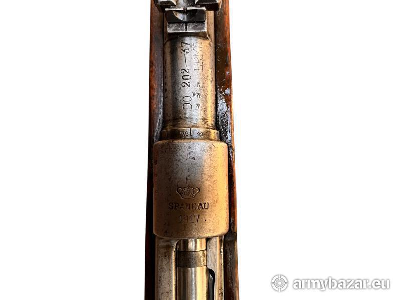 Popis: Niemiecki karabin Gewehr 98, wyprodukowany w Królewskim Arsenale Spandau w 1917 roku, będący pełnowymiarową wersją Gew.98 z okresu I wojny światowej (nie K98k). Egzemplarz ten był później przebudowany i ponownie odebrany wojskowo w latach 30., co potwierdza oznaczenie S/42 (Mauser Oberndorf), łącząc w sobie historię Cesarstwa Niemieckiego oraz III Rzeszy. Karabin niezgodny numerycznie – lufa i komora zamkowa posiadają ten sam numer, pozostałe elementy inne, co jest typowe dla egzemplarzy po remontach arsenalskich. Zachowane oryginalne bicia cesarskie, wojskowe Waffenamt oraz oznaczenia arsenalowe, potwierdzające autentyczną służbę wojskową. Broń można obejrzeć w Fortguns. Kontakt: 666366361