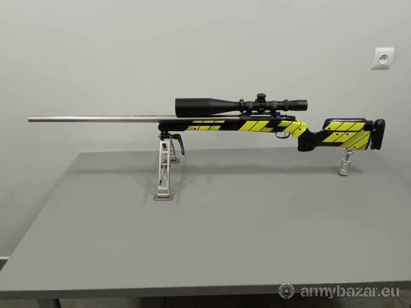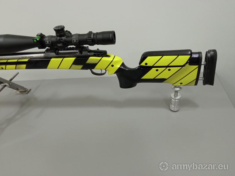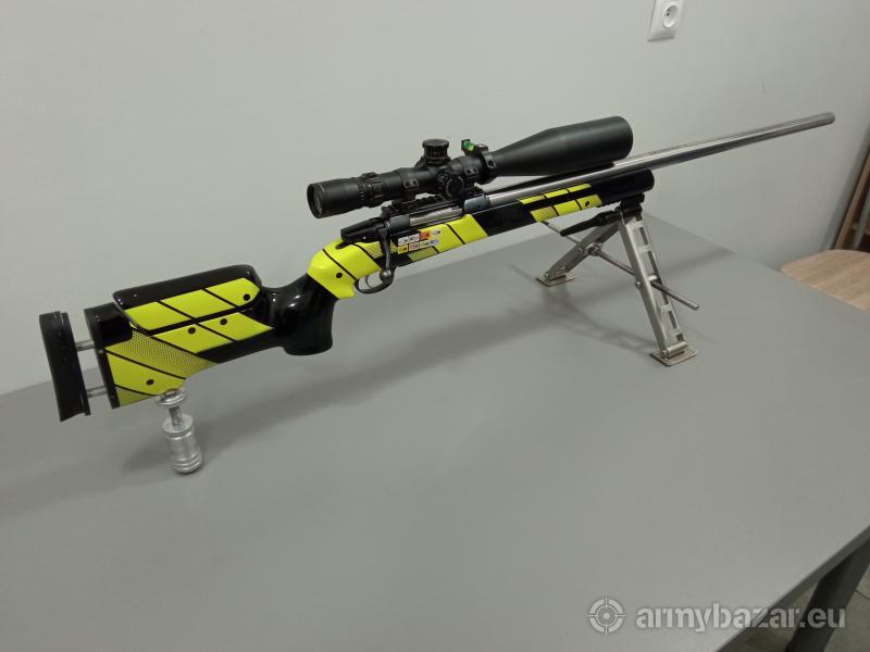 Popis: Sprzedam karabin sportowy do strzelań długodystansowych. Zbudowany na systemie CZ550 kaliber 6.5x55. Lufa z firmy Walther, długość 80cm. Przebieg karabinu max 1000 strzałów. Spust wyostrzony, nigdy nie miałem zacięcia, stan bdb. Kolba ze sklejki robiona na zamówienie, malowanie unikatowe, dużo regulacji, podpórka regulowana i wykręcana, łoże wylane z żywicy epoksydowej (bedding). Bipod z płynną regulacją wysokości, leżąc kręcimy pokrętłem na przekładni kątowej, odpinany na szybkozłączu. W tej chwili luneta ma możliwość nastawy strzału na 1200m. Cena dotyczy karabinu bez lunety. Możliwość zakupienia całego kompletu. W zestawie luneta March-X 8x-80-56mm 1/8 MOa w cenie 12 tysięcy