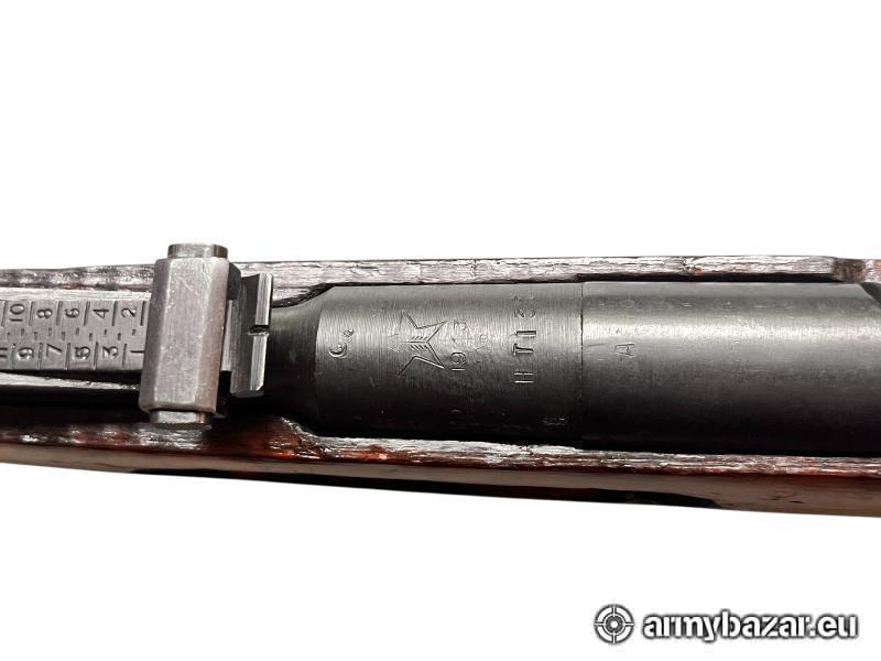 Popis: Radziecki Mosin Nagant 1891/30 wyprodukowany w 1943 roku w znanych zakładach zbrojeniowych Tula. Klasyczna konstrukcja z czasów II wojny światowej, wykorzystywana przez Armię Czerwoną na wszystkich frontach. Broń w stanie dobrym: elementy metalowe w bardzo dobrym stanie, lufa z wyraźnym gwintem i dobrą przewodnością, osada w stanie średnim. Wyposażony w klasyczną, długą lufę oraz bagnet mocowany na nasadę wylotu. Egzemplarz z duszą historii, doskonały do kolekcji. Stan: Dobry Broń można obejrzeć w Borowej obok Dęblina. Jest możliwość przestrzelania przed zakupem na prywatnej strzelnicy. Mój numer telefonu: 666 366 361.