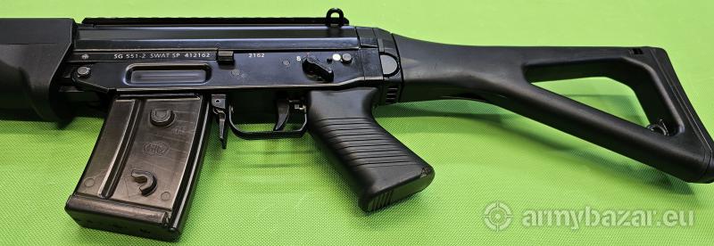 Popis: Najwyższej klasy modułowy karabinek szwajcarski w wersji dla jednostek specjalnych: krótsza lufa niż w modelu standardowym, specjalne pokrycie antykorozyjne/antyrefleksyjne, szyna montażowa pod przyrządy optyczne, awaryjne, stałe przyrządy celownicze. Broń w 100 % oryginalna i zgodna numerycznie, w bardzo dobrym stanie, lufa w stanie fabrycznym z gwintem zewnętrznym i kompensatorem. W komplecie jeden magazynek. Karabinek w oryginale samopowtarzalny bez jakichkolwiek, późniejszych przeróbek. Sprzedaż wyłącznie dla osób/podmiotów uprawnionych zgodnie z obowiązującym prawem. Odbiór wyłącznie osobisty. Na życzenie bezpłatna dostawa do klienta. Tel. 512 306 160. Szczegóły na www. BronAmunicja.pl