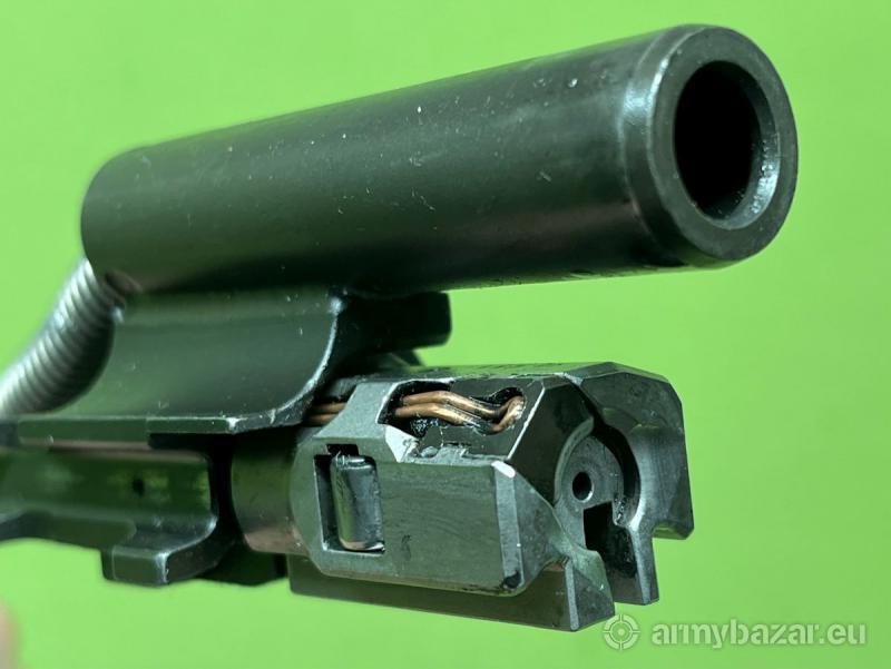 Popis: Pistolet samopowtarzalny Heckler & Koch Mp5, kal. 9x19mm. Broń opracowana w latach 60 XX wieku, której mechanika oparta jest na zasadzie odrzutu zamka połswobodnego, wyposażonego w opóźniacz rolkowy. Oferowany egzemplarz jest w stanie bardzo dobrym, lufa chromowana, w stanie idealnym - lustro. Brak jakichkolwiek ubytków chromu. Po stanie mechanizmów broni widać, że ta sztuka nie była intensywnie eksploatowana. Przeróbka na ogień pojedynczy wykonana z maksymalnym poszanowaniem walorów kolekcjonerskich - obecne wyłącznie fabryczne oznaczenia. Na terenie Polski dowóz do klienta w cenie.