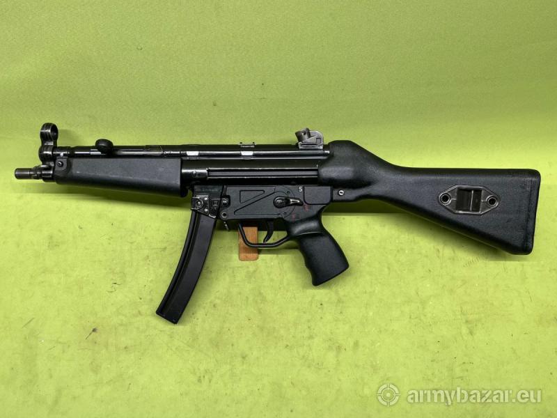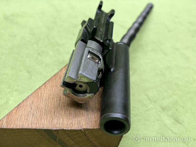 Popis: Pistolet samopowtarzalny Heckler & Koch Mp5, kal. 9x19mm. Broń opracowana w latach 60 XX wieku, której mechanika oparta jest na zasadzie odrzutu zamka połswobodnego, wyposażonego w opóźniacz rolkowy. Oferowany egzemplarz jest w stanie bardzo dobrym, lufa chromowana, w stanie idealnym - lustro. Brak jakichkolwiek ubytków chromu. Po stanie mechanizmów broni widać, że ta sztuka nie była intensywnie eksploatowana. Przeróbka na ogień pojedynczy wykonana z maksymalnym poszanowaniem walorów kolekcjonerskich - obecne wyłącznie fabryczne oznaczenia. Na terenie Polski dowóz do klienta w cenie.