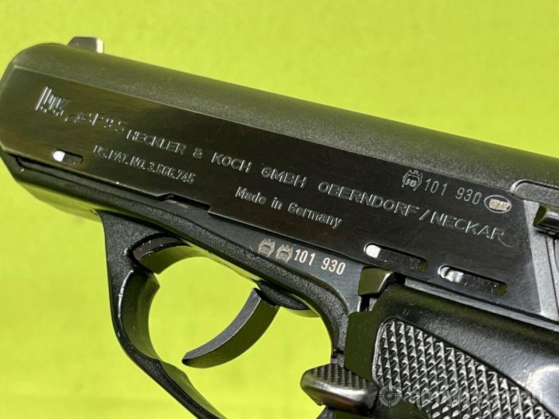 Popis: Pistolet samopowtarzalny Heckler & Koch P9S to broń opracowana pod koniec lat '60 XX wieku, produkowana od 1969 do roku 1978. Konstrukcja broni oparta jest na zasadzie opóźniacza rolkowego, znanego z innych konstrukcji HK takich jak karabin G3 czy pistolet maszynowy MP5. Pistolety P9S wykorzystywane były przez Niemiecką Policję, Wojsko oraz jednostkę specjalną GSG9.Oferowana broń jest w stanie praktycznie idealnym. Wyprodukowana w 1972 roku, pochodzi z demobilu Bundespolizei / Bundeswehry - świadczą o tym atesty znajdujące się na lufie, tłoku zaporowym, zamku oraz szkielecie broni. Kuta na zimno lufa poligonalna w stanie idealnym - lustro. Na terenie Polski dowóz do klienta w cenie.