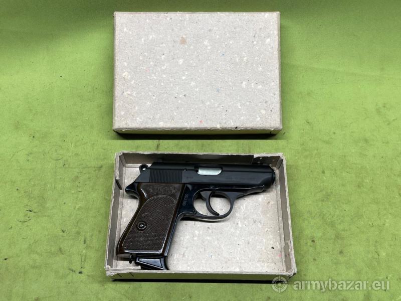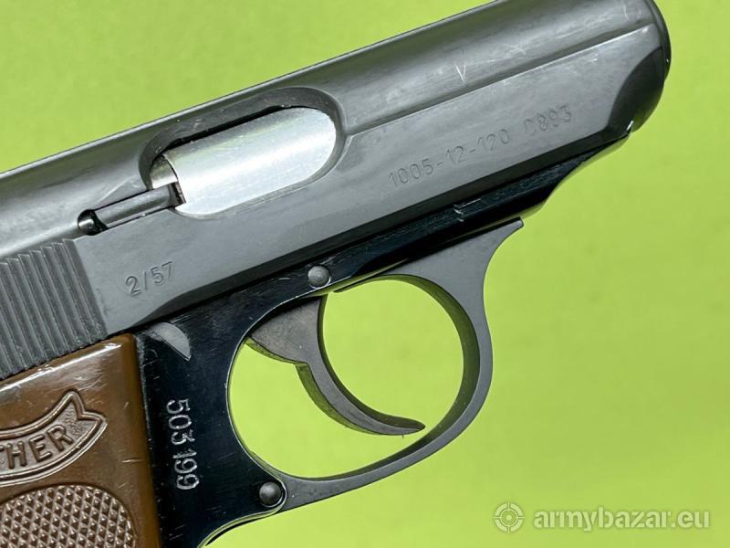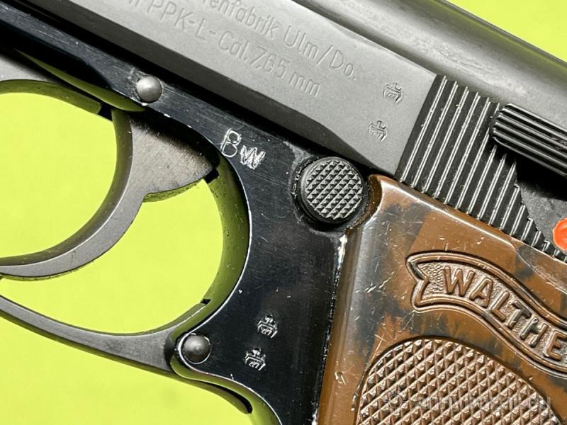 Popis: Pistolet samopowtarzalny Walther PPK-L P.21 w kalibrze 7,65 Browning wyprodukowany w ramach kontraktu dla Bundeswehry przez niemieckie zakłady Walther Ulm. Bardzo rzadki wariant - kontrakt dotyczył dostarczenia 7457 egzemplarzy pistoletów Walther PPK oraz zaledwie 1889 PPK-L. Pistolety te używane były przez Bundesluftwaffe jako broń osobista pilotów. Oferowany egzemplarz broni znajduje się w stanie bardzo dobrym - zarówno mechanicznie jak i estetycznie. Widać, że był używany, jednak niezbyt intensywnie. Lufa w stanie idealnym - lustro. W komplecie znajduje się jeden magazynek oraz oryginalne pudełko od tego egzemplarza. Na terenie Polski dowóz do klienta w cenie.