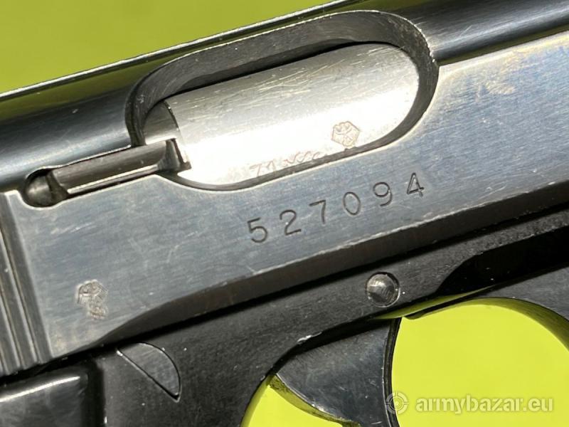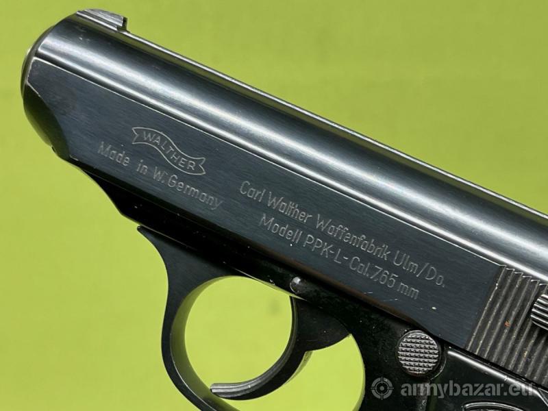 Popis: Pistolet samopowtarzalny Walther PPK-L w kalibrze 7,65 Browning produkcji niemieckich zakładów Walther Ulm. Oferowany egzemplarz broni znajduje się w stanie bardzo dobrym. Widać, że był niewiele używany, posiada normalne ślady eksploatacji. Na lufie widoczny atest nitro z 1971 roku. Lufa w stanie idealnym - lustro. W komplecie znajduje się jeden magazynek. Na terenie Polski dowóz do klienta w cenie.