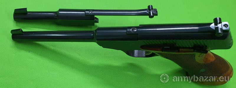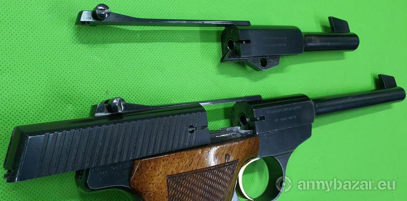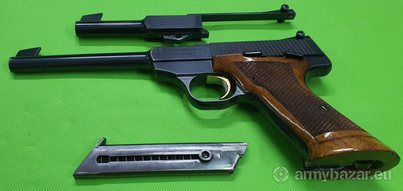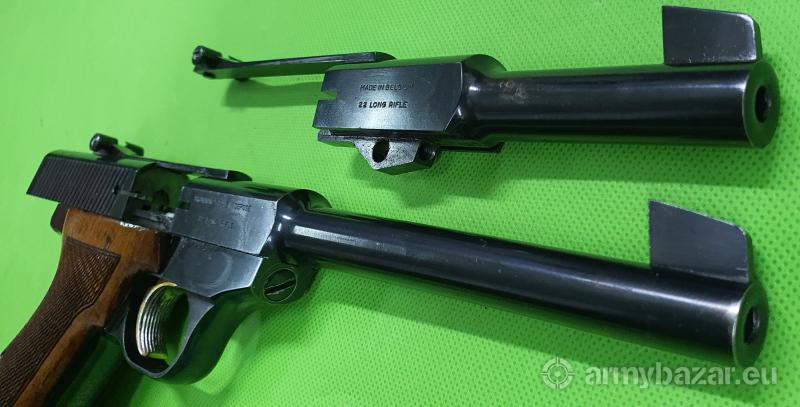 Popis: Niezawodny, w całości stalowy pistolet tarczowy belgijskiej produkcji – w bardzo rzadkiej wersji z lufą o długości 170 mm (standard to 150 mm) oraz drugim systemem lufy o długości 115 mm. Szczerbina regulowana mikrometrycznie, zamek po opróżnieniu magazynka zostaje zablokowany w tylnym położeniu. Oferowany egzemplarz znajduje się w bardzo dobrym stanie i jest w 100% oryginalny. Przewód każdej z luf nieskazitelny. W komplecie jeden magazynek. Do zakupu wymagane są dwie promesy. Sprzedaż wyłącznie dla osób/podmiotów uprawnionych zgodnie z obowiązującym prawem. Odbiór wyłącznie osobisty. Na życzenie bezpłatna dostawa do klienta. Tel. 512 306 160. Szczegóły na www. BronAmunicja.pl