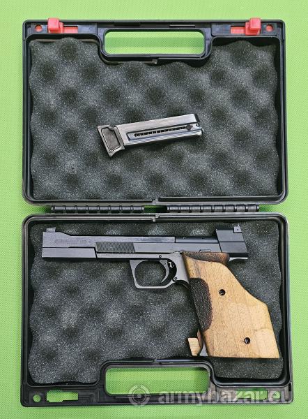 Popis: Najwyższej klasy szwajcarski, rzadki pistolet wyczynowy. Model S od “zwykłego”215 różni się między innymi szkieletem oraz mechanizmem spustowym (precyzyjne regulowanym). Konstrukcja w pełni stalowa, wszystko wykończone w sposób doskonały. Szczerbina regulowana mikrometrycznie w obu płaszczyznach, chwyt anatomiczny, praworęczny w średnim rozmiarze z regulowaną półką. Egzemplarze w bardzo dobrym stanie, Wszystko w 100% oryginalne i zgodne numerycznie. W komplecie dwa magazynki oraz kuferek. Sprzedaż wyłącznie dla osób/podmiotów uprawnionych zgodnie z obowiązującym prawem. Odbiór wyłącznie osobisty. Na życzenie bezpłatna dostawa do klienta. Tel. 512 306 160. Szczegóły na www. BronAmunicja.pl