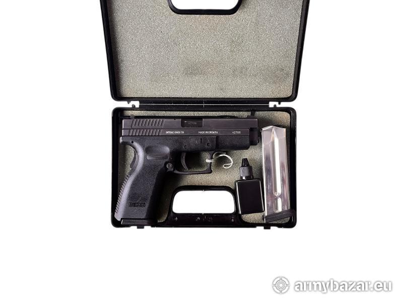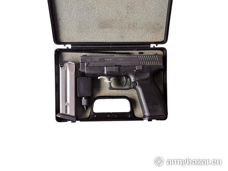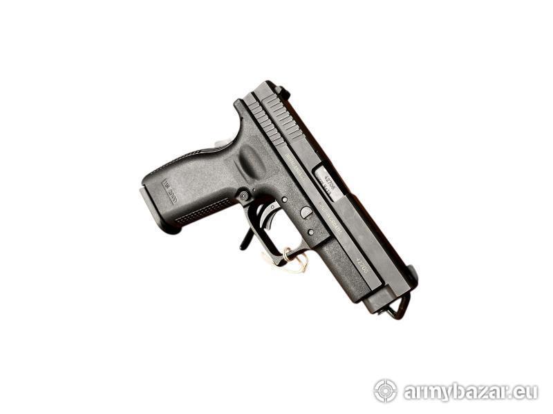 Popis: Pistolet I.M. Metal HS2000 to chorwacka broń samopowtarzalna w kalibrze 9x19 mm, opracowana przez firmę HS Produkt i znana na świecie jako baza dla popularnego modelu Springfield XD. Konstrukcja została przyjęta na wyposażenie chorwackich sił zbrojnych i służb, a następnie zdobyła dużą popularność na rynku cywilnym dzięki niezawodności i dobrej ergonomii. Pistolet posiada polimerową ramę, mechanizm spustowy typu striker-fired oraz szereg zabezpieczeń, w tym bezpiecznik chwytowy. Charakteryzuje się wygodnym chwytem, dobrą kontrolą podczas strzelania i wysoką trwałością. Egzemplarz w zestawie z pudełkiem oraz dwoma magazynkami, zarysowany zamek. Stan: Dobry Fortguns. Kontakt: 666 366 361