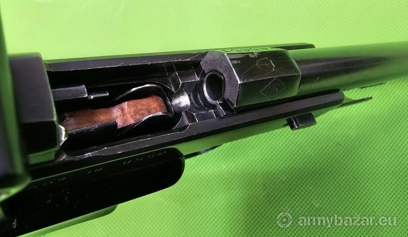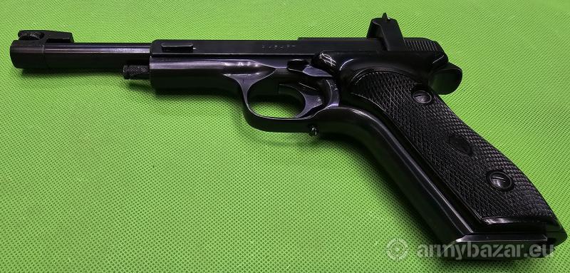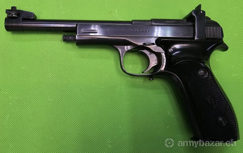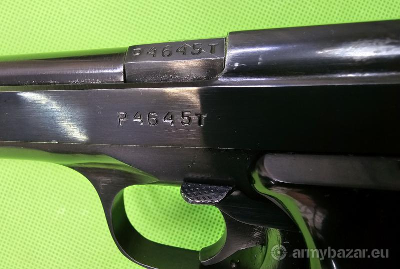 Popis: Ceniony przez strzelców sportowych “niezniszczalny” i coraz rzadszy pistolet tarczowy. Przyrządy celownicze regulowane w poziomie i w pionie. Wersja wyposażona w dźwignię blokady zamka/bezpiecznika. Broń znajduje się w bardzo dobrym stanie i jest zgodna numerycznie (poza magazynkiem). Poza śrubą regulacyjną szczerbiny wszystko oryginalne. Prawa okładzina nosi ślady naprawy – klejenia. W komplecie jeden magazynek. Szczegóły na www. BronAmunicja.pl. Sprzedaż wyłącznie dla osób/podmiotów uprawnionych zgodnie z obowiązującym prawem. Odbiór wyłącznie osobisty. Na życzenie bezpłatna dostawa do klienta. Tel. 512 306 160