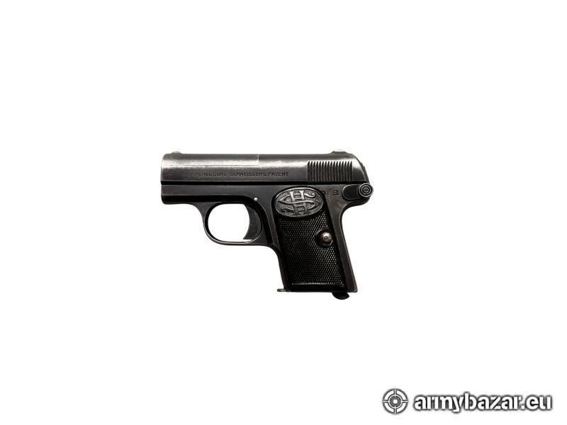 Popis: Niemiecki pistolet Haenel Schmeisser Model 1 w kalibrze 6,35 mm, zaprojektowany przez legendarnego konstruktora Hugo Schmeissera. Produkowany od lat 20. XX wieku jako kompaktowa broń do samoobrony. Egzemplarz wyposażony w oryginalne plastikowe okładziny chwytu z logo producenta – charakterystyczne dla późniejszych wersji tego modelu. Mechanizm blowback, niewielkie wymiary i klasyczna sylwetka sprawiają, że to ciekawy nabytek dla kolekcjonera broni z ceniących wiekowe konstrukcje. Stan: Średni Broń można obejrzeć w Borowej obok Dęblina. Jest możliwość przestrzelania przed zakupem na prywatnej strzelnicy. Mój numer telefonu: 666 366 361.