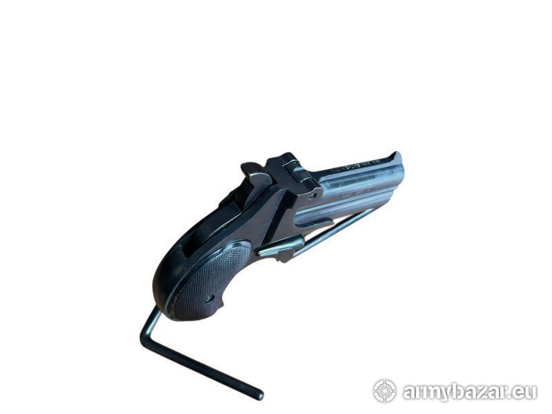 Popis: Pistolet Röhm Derringer RG15S w kalibrze .22lr to kompaktowa broń palna wyprodukowana w 1974 roku, zaprojektowana głównie do zastosowań osobistych i jako broń zapasowa. Konstrukcja opiera się na klasycznym mechanizmie dwulufowym typu derringer, gdzie lufy są odchylane do ładowania, a mechanizm spustowy umożliwia oddanie dwóch strzałów bez przeładowania. Model RG15S wyróżnia się prostotą obsługi i niewielkimi wymiarami, co czyniło go popularnym wyborem wśród osób poszukujących łatwej do ukrycia broni bocznej. Broń dostępna w Fortguns obok Dęblina. Jest możliwość przestrzelania przed zakupem na prywatnej strzelnicy. Kontakt: 666 366 361.