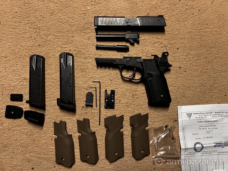 Popis: Sprzedam pistolet VIS 100 M1. • Rocznik: 2021 • Kolor: Czarny • Przebieg: Symboliczny, ok. 100 strzałów • Stan: Idealny, broń jak nowa • W zestawie: Pełny komplet fabryczny (walizka, magazynki, nakładki, przybory) 695349312