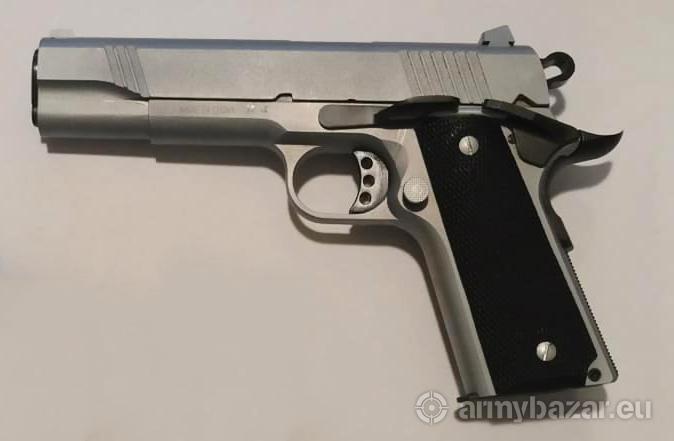 Popis: Jedna z najvydarenejších kópií legendárnej pištole Colt 1911 v dostupnom kalibri 9x19mm Luger. Presná celochrómová hlaveň, skeletonová spúšť, veľké mieridlá, solídna konštrukcia, ktorá sa nikdy nezasekne, absolútne nenáročná na strelivo. Nový kus. V balení sú 2x 9 ranový zásobník, manual, cistenie a kufrík. Pozor, na trhu sa môžu nachádzať aj staré 3 ročné modely, ktoré s týmito novými majú málo spoločné! Inzerát platí do zmazania Iba na zbrojný preukaz!