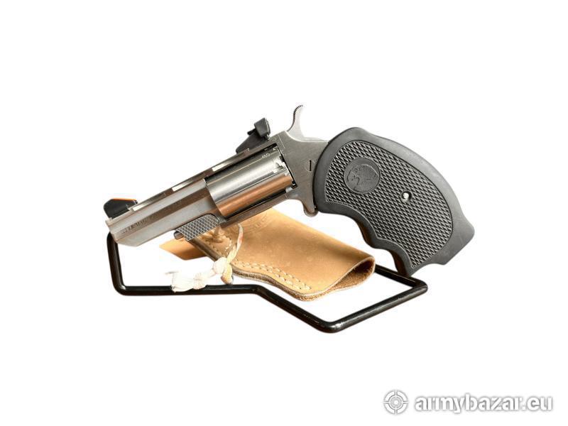 Popis: Rewolwer NAA Black Widow w kalibrze .22 Magnum to kompaktowa broń palna produkowana przez North American Arms, zaprojektowana głównie do zastosowań osobistych i rekreacyjnych. Model ten wyposażony jest w mechanizm pojedynczego działania (single action) oraz bęben na pięć nabojów, co zapewnia prostotę obsługi i wysoką niezawodność. Black Widow wyróżnia się charakterystyczną, wydłużoną lufą oraz ergonomicznymi okładzinami chwytu, co poprawia komfort użytkowania mimo niewielkich rozmiarów. Broń dostępna w Fortguns obok Dęblina. Jest możliwość przestrzelania przed zakupem na prywatnej strzelnicy. Kontakt: 666 366 361.