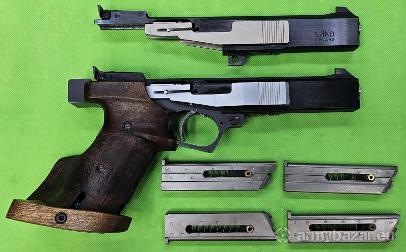 Popis: Fiński pistolet wyczynowy w dwóch systemach kalibrowych. Porządna i niezawodna, stalowa konstrukcja, zamki ze stali nierdzewnej. Chwyt w rozmiarze średnim, anatomiczny, praworęczny z regulowaną półką. Każdy z systemów ma własne, regulowane mikrometrycznie (szczerbina) przyrządy celownicze. Cały zestaw oryginalny, w bardzo dobrym stanie, lufy w każdym z systemów nieskazitelne. W komplecie po dwa magazynki do każdego kalibru. Do zakupu wymagane są dwie promesy. Szczegóły na www. BronAmunicja.pl. Sprzedaż wyłącznie dla osób/podmiotów uprawnionych zgodnie z obowiązującym prawem. Odbiór wyłącznie osobisty. Na życzenie bezpłatna dostawa do klienta. Tel. 512 306 160