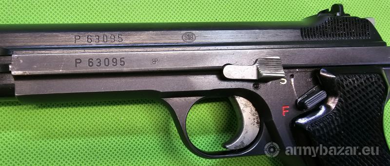 Popis: Legendarny, doskonale wykonany pistolet szwajcarski – według wielu opinii najcelniejsza broń w kalibrze 9×19. Konstrukcja w pełni stalowa, zamek pracuje wewnątrz szkieletu, co usztywnia całą konstrukcje i decydująco wpływa na precyzję działania oraz celność. Pistolet doskonale leży w dłoni i jest świetnie wyważony. Egzemplarz w doskonałym stanie technicznym, w 100% oryginalny i w całości zgodny numerycznie. Lufa nieskazitelna. W komplecie jeden magazynek i kabura. Sprzedaż wyłącznie dla osób/podmiotów uprawnionych zgodnie z obowiązującym prawem. Odbiór wyłącznie osobisty. Na życzenie bezpłatna dostawa do klienta. Tel. 512 306 160. Szczegóły na www. BronAmunicja.pl