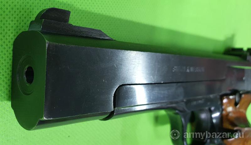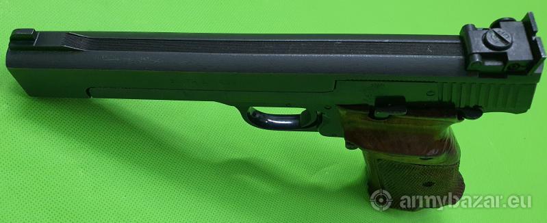 Popis: Legendarny amerykański pistolet tarczowy, produkowany od lat 50 – tych ubiegłego wieku, aż po dziś dzień. Niezwykle precyzyjna w całości stalowa konstrukcja. Broń wyposażona w nastawny bezpiecznik, bezpiecznik magazynkowy oraz dźwignię zrzutu zamka (zamek po opróżnieniu magazynka pozostaje w tylnym położeniu). Egzemplarz znajduje się w doskonałym stanie. Piękna głęboka, czarna oksyda i oczywiście nieskazitelna lufa. Wszystko w 100 % oryginalne. W komplecie jeden magazynek. Sprzedaż wyłącznie dla osób/podmiotów uprawnionych zgodnie z obowiązującym prawem. Odbiór wyłącznie osobisty. Na życzenie bezpłatna dostawa do klienta. Tel. 512 306 160. Szczegóły na www. BronAmunicja.pl