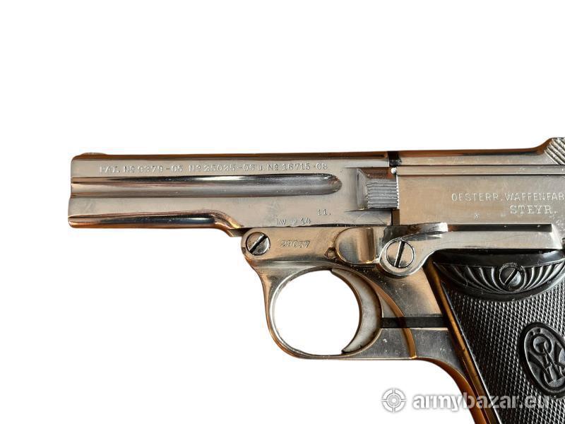Popis: Oryginalny pistolet Steyr M1908, produkcji Österreichische Waffenfabriks-Gesellschaft Steyr. Egzemplarz zgodny numerycznie. Broń posiada wojskowe bicie odbiorcze „LW 14” z orłem, potwierdzające przyjęcie do służby w austriackiej Landwehrze w 1914 roku – początek I wojny światowej. Jest to egzemplarz kontraktowy, a nie cywilny. Na zamku widoczne patenty z lat 1905–1908, charakterystyczne dla modelu M1908. Egzemplarz o wysokiej wartości historycznej i kolekcjonerskiej, z czytelnymi oznaczeniami i naturalnymi śladami użytkowania. Stan: Bardzo dobry Broń można obejrzeć w Fortguns obok Dęblina. Jest możliwość przestrzelania przed zakupem na prywatnej strzelnicy. Kontakt: 666 366 361.