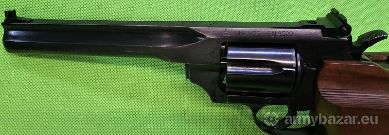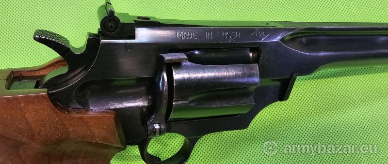 Popis: Unikatowy rewolwer sportowy o doskonałej precyzji wykonania. Nigdy nie produkowany masowo i stąd zawsze trudny do zdobycia. Rewolwer niezwykle dokładny i celny, pasowany ręcznie w zasadzie po najmniejszą część – dlatego wielokrotnie triumfujący w najpoważniejszych zawodach strzeleckich ubiegłego stulecia. Egzemplarz w idealnym stanie (jak nowy), lufa nieskazitelna. Pełna zgodność numeryczna. Sprzedaż wyłącznie dla osób/podmiotów uprawnionych zgodnie z obowiązującym prawem. Odbiór wyłącznie osobisty. Na życzenie bezpłatna dostawa do klienta. Tel. 512 306 160. Szczegóły na www. BronAmunicja.pl