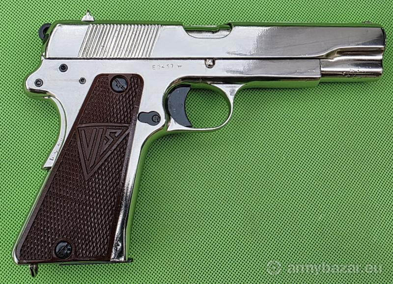 Popis: Okupacyjna wersja z początku serii „E” należącej do tzw. drugiej wersji produkcyjnej, wytwarzanej przez Niemców w Fabryce Broni w Radomiu w latach 1941–1943. egzemplarz jest w pełni zgodny numerycznie i pochodzi z jednej kompletacji fabrycznej. Przewód lufy co najmniej w dobrym stanie, świetnie trzyma skupienie. Broń zapewne już po wojnie, została “odrestaurowana ” poprzez położenia warstwy chromu na szkielecie, zamku i lufie oraz położenie nowej oksydy na podzespołach i częściach. Szczegóły na www. BronAmunicja.pl. Sprzedaż wyłącznie dla osób/podmiotów uprawnionych zgodnie z obowiązującym prawem. Odbiór wyłącznie osobisty. Na życzenie bezpłatna dostawa do klienta. Tel. 512 306 160