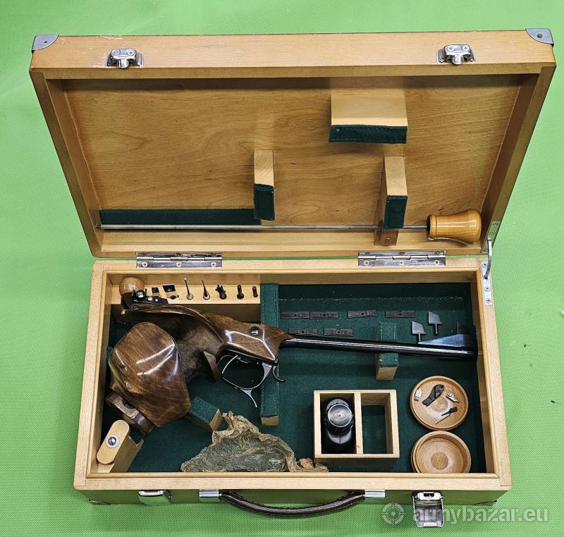 Popis: Precyzyjnie wykonany, wyczynowy pistolet dowolny, używany przez mistrzów. Tym pistoletem ustanowiony został rekord świata, który nie został pobity przez prawie dwie dekady. Wszystko niezwykle precyzyjnie regulowane. Egzemplarz w idealnym stanie, w 100 % oryginalny i zgodny numerycznie. Lufa nieskazitelna. W komplecie zestaw narzędzi, wycior, olejarka, przybornik z wymiennymi szczerbinami i muszkami oraz kilkoma zapasowymi częściami- ja na zdjęciu. Wszystko w oryginalnym, drewnianym kufrze. Sprzedaż wyłącznie dla osób/podmiotów uprawnionych zgodnie z obowiązującym prawem. Odbiór wyłącznie osobisty. Na życzenie bezpłatna dostawa do klienta. Tel. 512 306 160. Szczegóły na www. BronAmunicja.pl