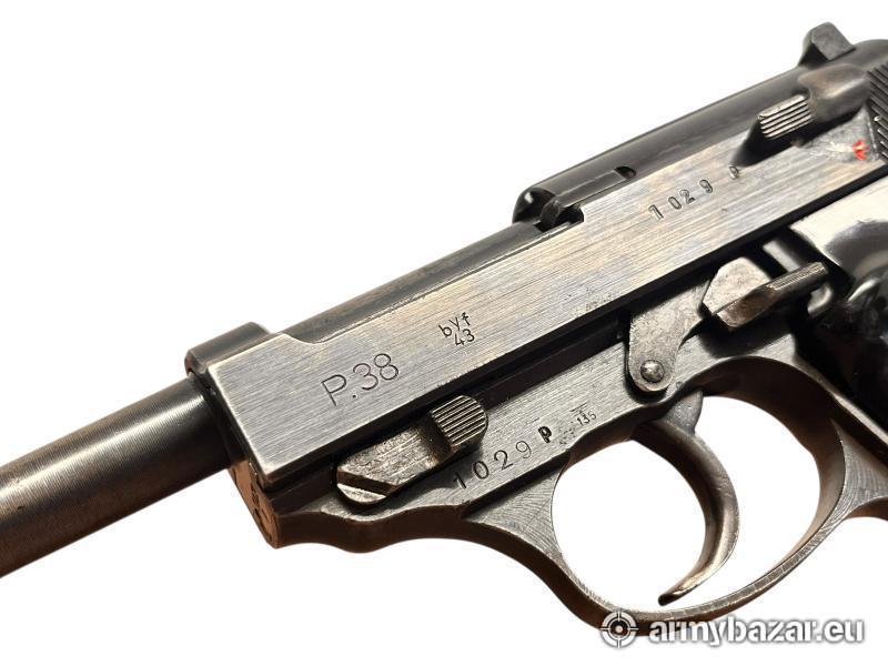 Popis: Legendarny pistolet Wehrmachtu – Walther P38 z 1943 r. Egzemplarz z fabryki Mausera (kod byf 43), posiada oryginalne wojskowe odbiory WaA135. To następca kultowego P.08 Luger, ceniony za niezawodność i nowoczesny mechanizm spustowy DA/SA. Broń jest zgodna numerycznie, z wyjątkiem magazynka. Stan dobry minus, lufa w stanie średnim – to autentyczny świadek historii. Mechanicznie w pełni sprawny. Wyjątkowa propozycja dla każdego kolekcjonera i pasjonata. Broń można obejrzeć w Borowej k. Dęblina. Jest możliwość przestrzelania przed zakupem na prywatnej strzelnicy. Kontakt: 666 366 361.