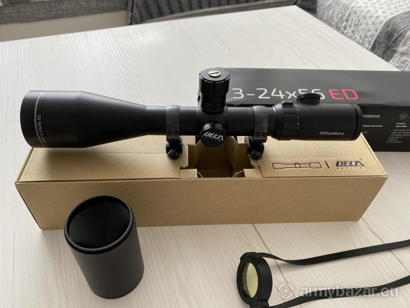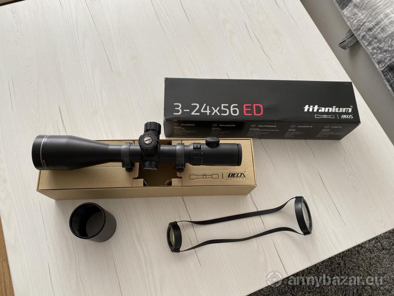 Popis: Predám puskohlad titanium delta optical 3-24x56 ED... V cene je zahrnutý samotný puskohlad, clona a montáž...